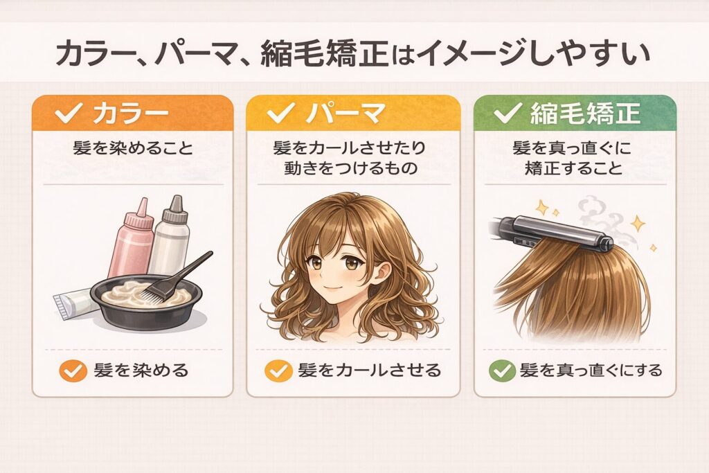 薬剤を使って髪の構造に働きかけ、クセを伸ばしたり